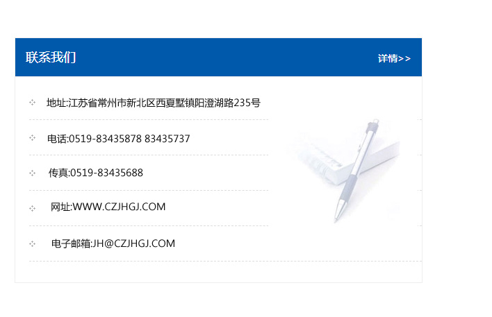 地址:常州市新北區友邦商務大廈1幢16、17層  電話:0519-85101652  傳真:0519-85112595  郵編:213022  網址:www_cz-jiayue_cn.qdjiaqiang.com  郵箱:xiajifengaa@163.com